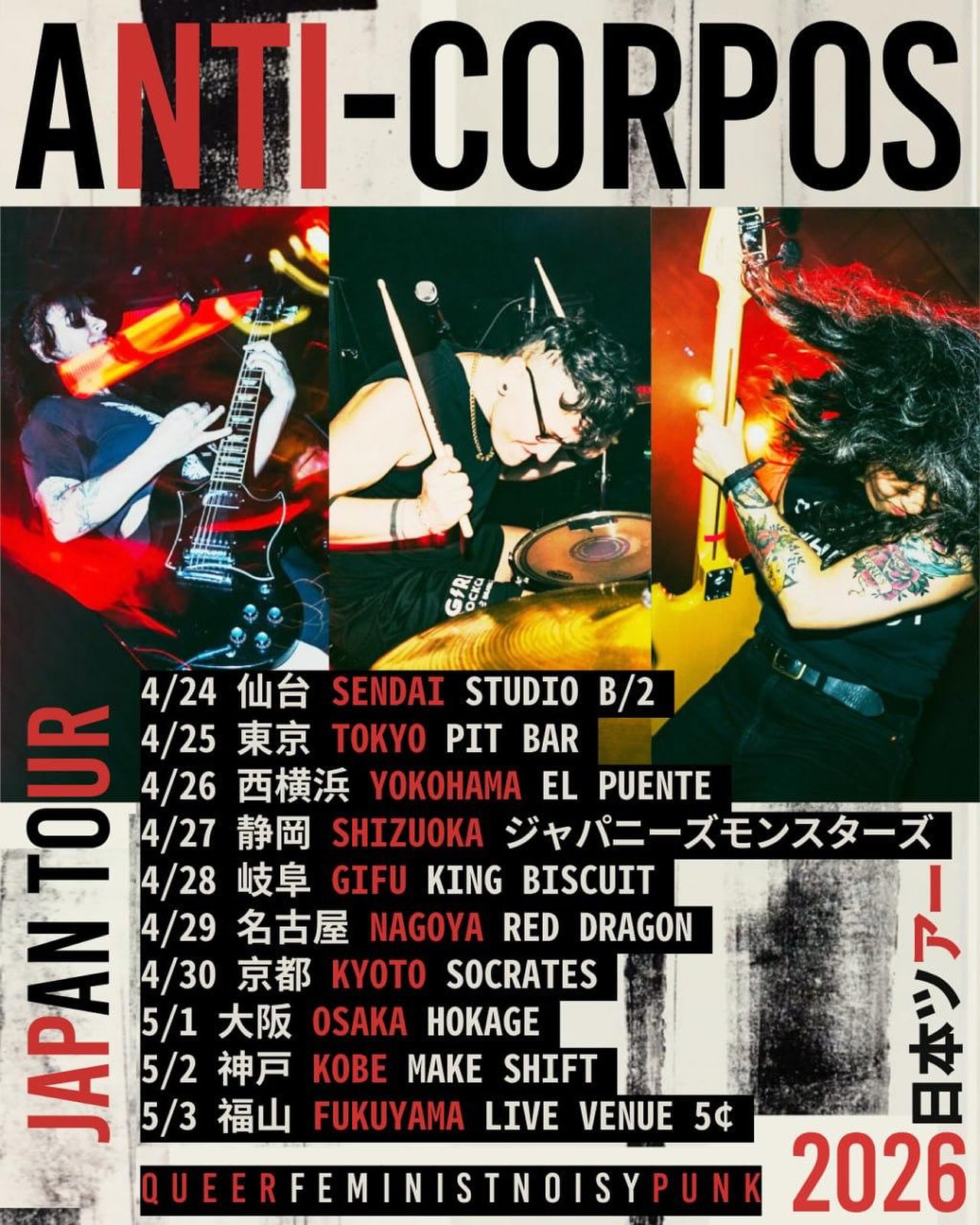 ブラジル出身、現在はベルリンを拠点に活動する Hardcore バンド Anti-Corpos のジャパンツアーが、2026年4月〜5月に行われることが発表されています。