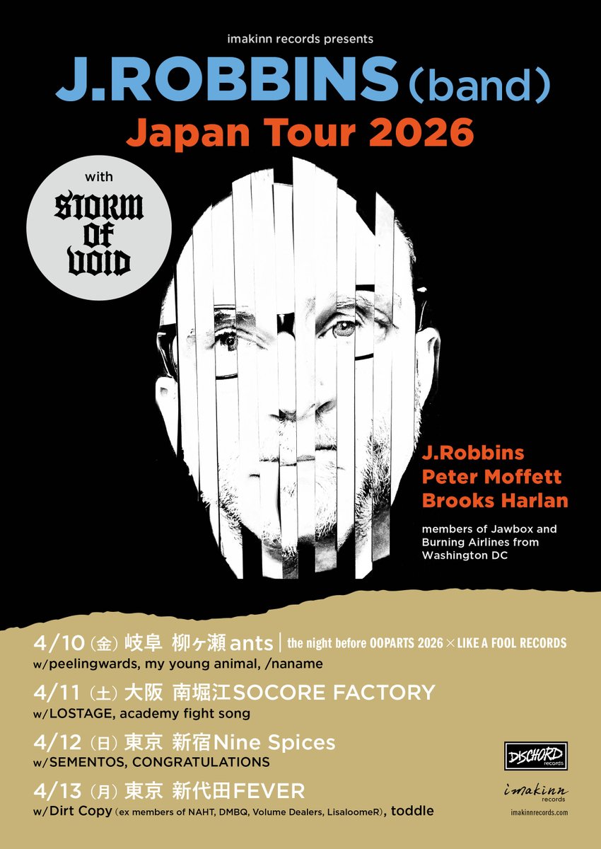 Jawbox や Burning Airlines での活動で知られる Punk Rock ミュージシャン J. Robbins が、バンド編成でのジャパンツアーを2026年4月に行うことが発表されました。
