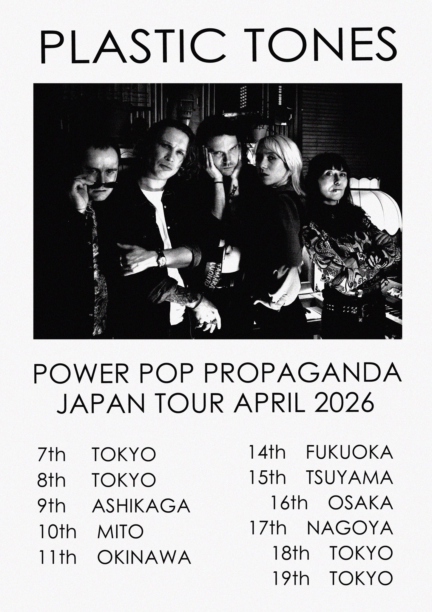 フィンランドの Punk / Power Pop バンド Plastic Tones のジャパンツアーが、2026年4月に行われることが発表されました。
